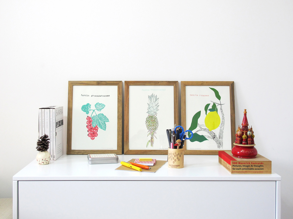 Produzida devido à parceria com a Selvvva, em uma participação excepcional como editora na Feira Plana, a série Famílias se desdobrou em pequenos cartazes impressos em pp ou papel. Cada uma das imagens botânicas foi produzida manualmente com uma técnica específica, compondo um todo a partir de diversidades.