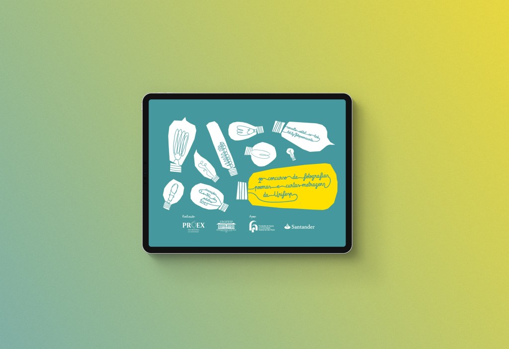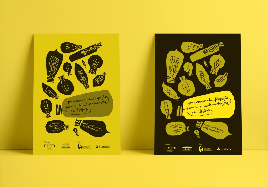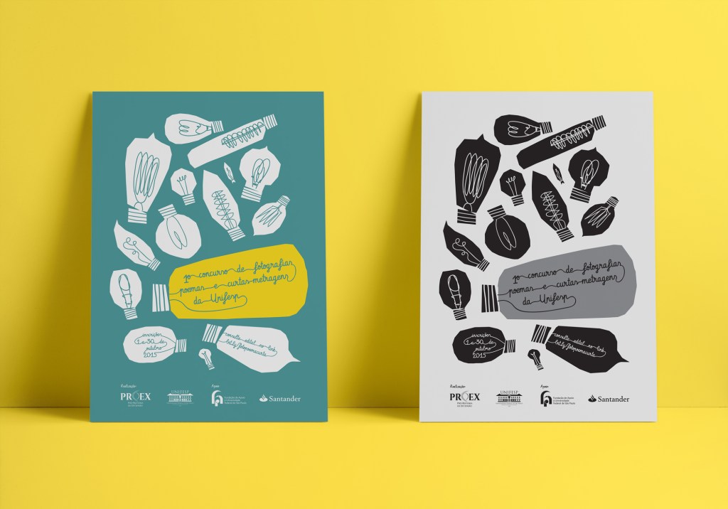 O partido escolhido para desenvolver os cartazes de divulgação do Concurso de Fotografias, Poemas e curtas-mestragens da Unifesp explora o imaginário coletivo da lâmpada como símbolo de criação, de criatividade, mas pela premissa de que existe uma diversidade de formas e possibilidades para a expressão humana.