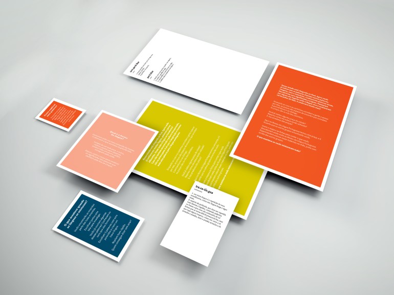 Por meio de dobradura, o pôster funciona ainda como um invólucro para os diversos elementos, dando unidade ao kit.