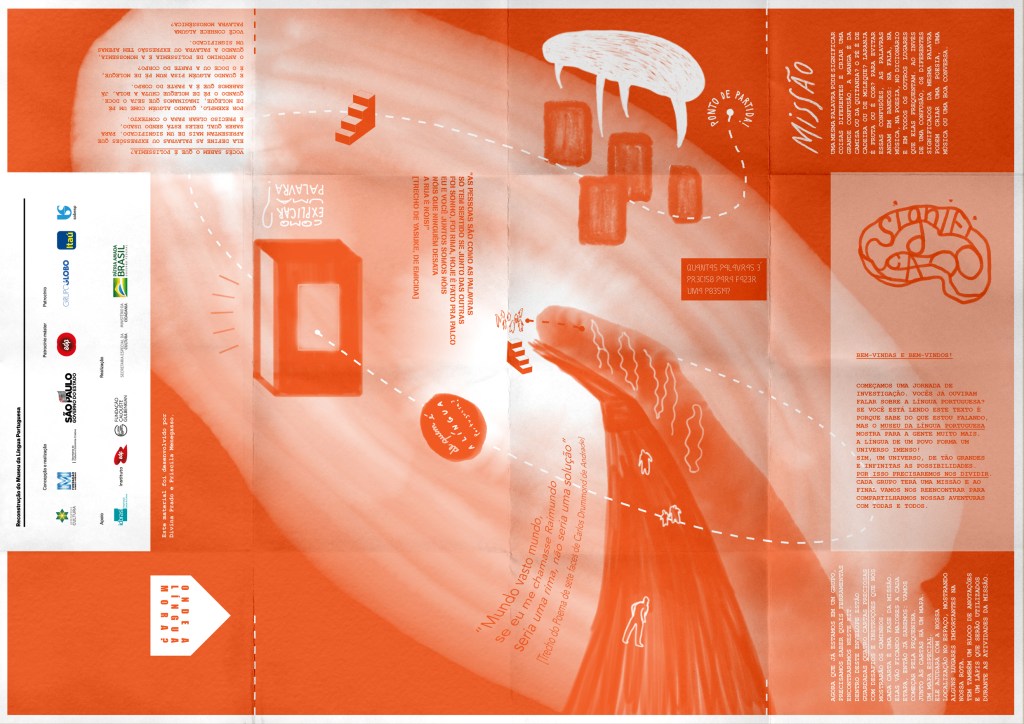 No contexto de preparo para a reabertura do Museu da Língua Portuguesa, o programa educativo da instituição organizou uma programação que privilegiava a integração com seu entorno, propondo visitas pelo acervo – ainda em processo de finalização – para escolas públicas parceiras. Para contribuir com a experiência dessa visitação, foi desenvolvido o dispositivo Visita-jogo em parceria com Divina Prado.